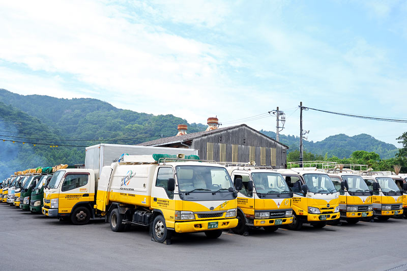 現在は、一般廃棄物事業として高知県下の各市町村において、可燃ゴミ、金属ゴミ、廃プラスチック類の収集運搬を担当しています(市町村や事業者によって異なります)。