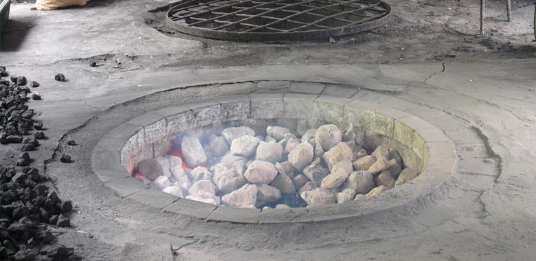 当社は、明治27年(1894)の創業以来、高知県南国市稲生(いなぶ)の地で石灰石を採掘し、江戸時代以来の伝統的な徳利型土中竃(とっくりがたどちゅうがま)を使用した独自の工法によって焼成し、高知県の地場産業品である「土佐塩焼き灰」「土佐漆喰(しっくい)」を製造してまいりました。