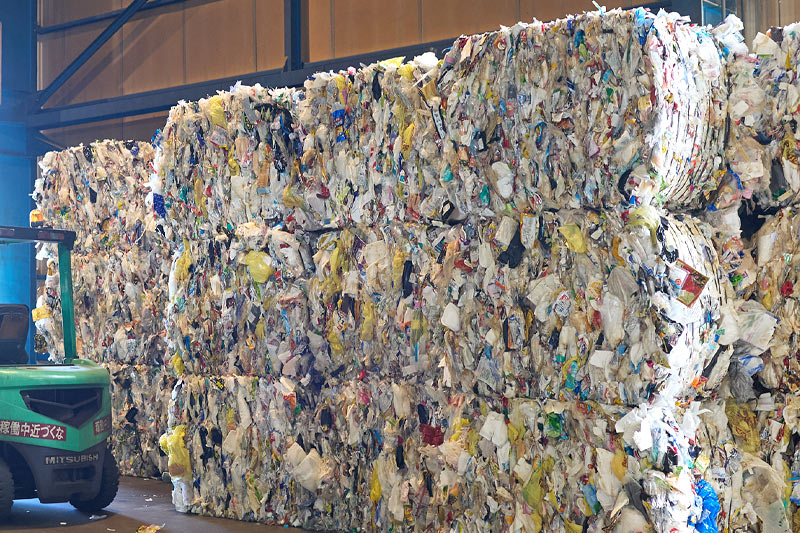 容器包装リサイクル法の枠組みの中で、家庭から出されたプラスチック製容器包装ごみを受け入れてますが、その中には、多素材のプラスチック類が含まれています。