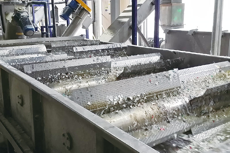 家庭から排出され異物を除去したプラスチック製容器包装ごみを素材ごとに選別し、粉砕・洗浄・比重選別・脱水・乾燥工程を経て、プラスチックペレットなどを製造します。