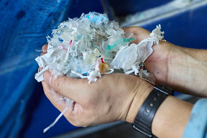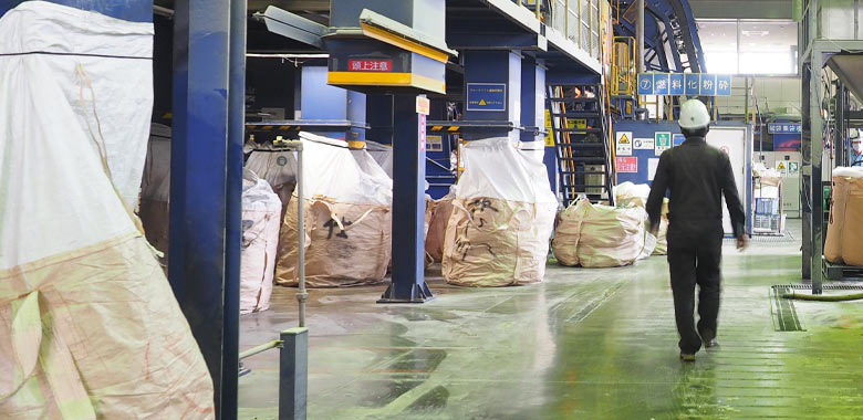 家庭から排出されたプラスチック製容器包装ごみの中から異物を除去し、素材ごとに選別し、粉砕・洗浄・比重選別・脱水・乾燥工程を経て、プラスチックペレットなどの再商品化の原料を製造・販売しています。日々、再生原料の高品質化、そしてリサイクル率の向上を目指し、国内循環型リサイクルの構築のために取り組んでいます。