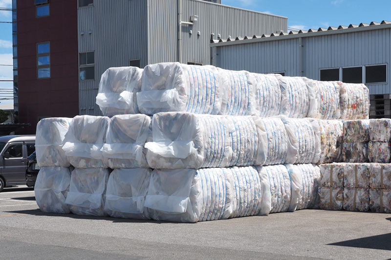 容器包装リサイクル法の枠組みの中で、家庭から出されたプラスチック製容器包装ごみを受け入れてますが、その中には、多素材のプラスチック類が含まれています。